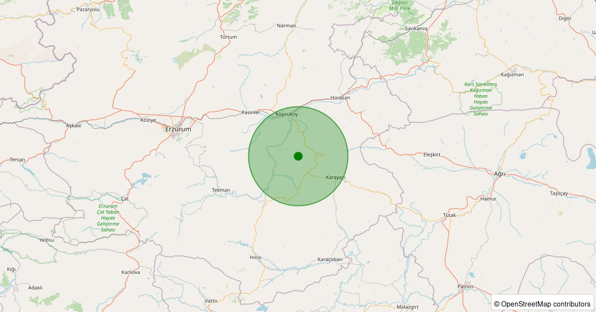 Son 7 gün içinde Köprüköy - Topçu noktasından 100 km yarıçap içerisinde meydana gelen diğer depremler: