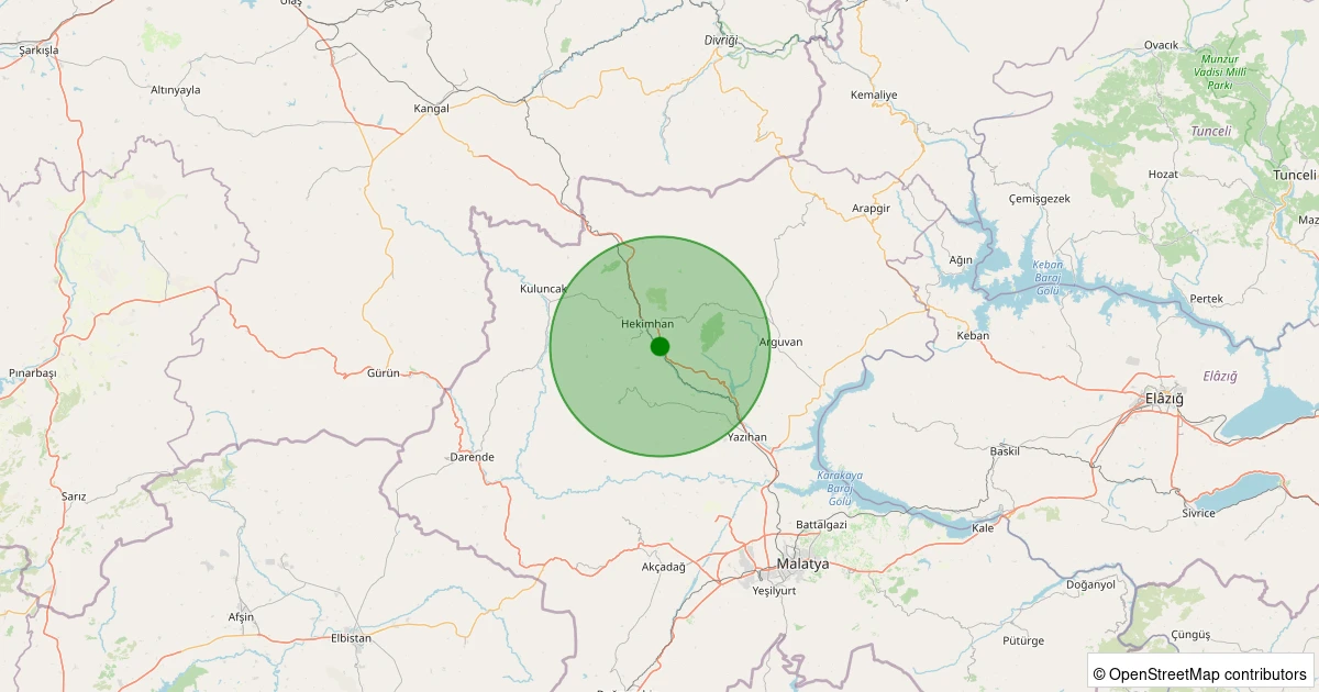 Son 7 gün içinde Hekimhan - Yeni noktasından 100 km yarıçap içerisinde meydana gelen diğer depremler:
