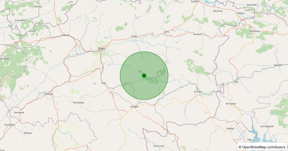 Son 7 gün içinde Ulaş - Çavdar Köyü noktasından 100 km yarıçap içerisinde meydana gelen diğer depremler: