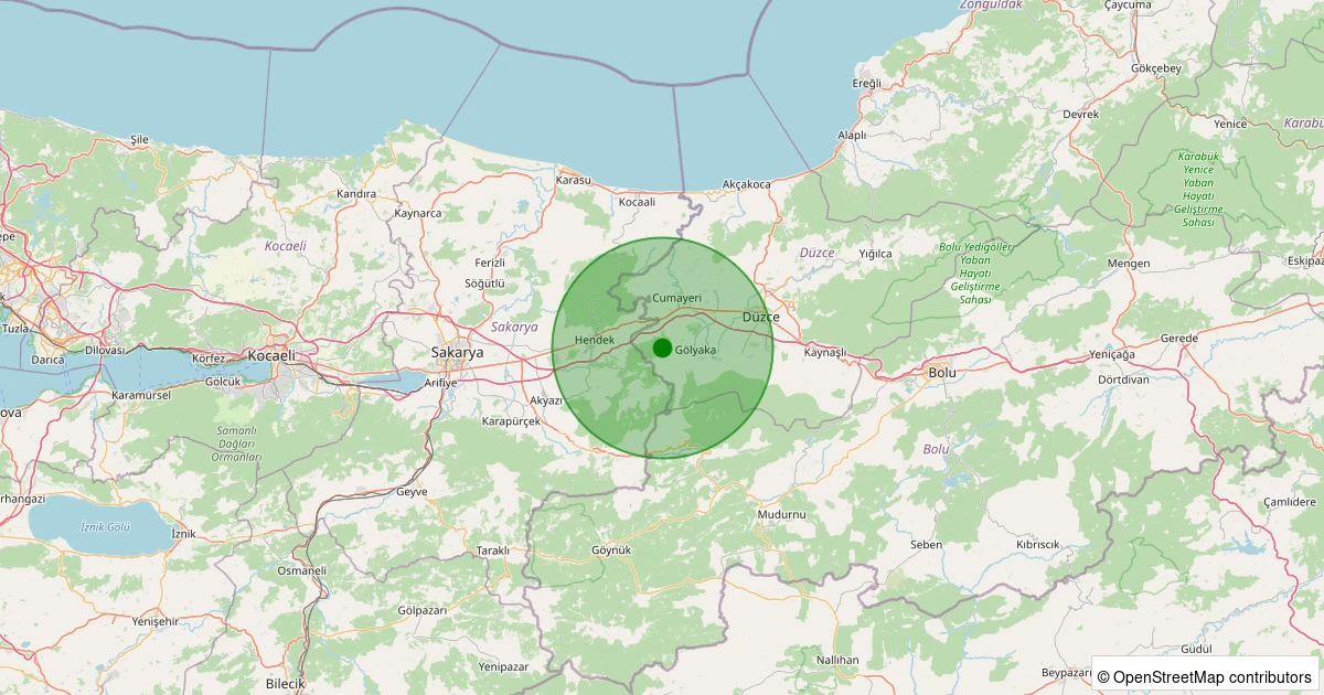 Son 7 gün içinde Gümüşova - Yeşilyayla Köyü noktasından 100 km yarıçap içerisinde meydana gelen diğer depremler: