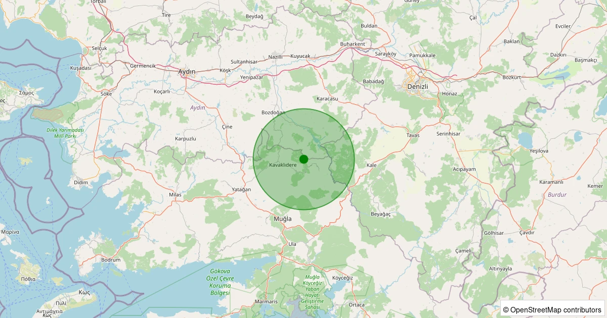 Son 7 gün içinde Kavaklıdere - Nebiler noktasından 100 km yarıçap içerisinde meydana gelen diğer depremler: