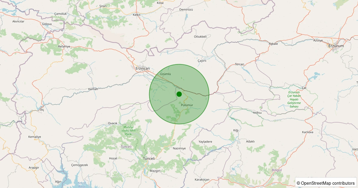 Son 7 gün içinde Pülümür - Kırkmeşe Köyü noktasından 100 km yarıçap içerisinde meydana gelen diğer depremler: