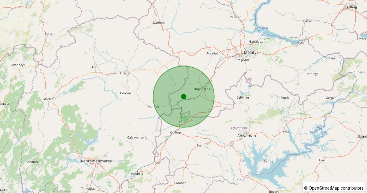 Son 7 gün içinde Doğanşehir - Küçüklü noktasından 100 km yarıçap içerisinde meydana gelen diğer depremler: