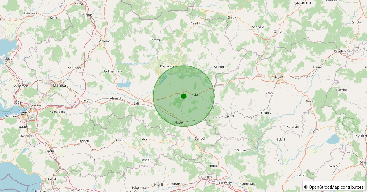 Son 7 gün içinde Kula - Esenyazı noktasından 100 km yarıçap içerisinde meydana gelen diğer depremler: