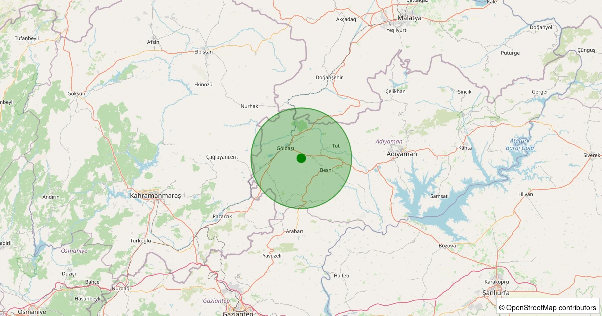 Son 7 gün içinde Besni - Burunçayır Köyü noktasından 100 km yarıçap içerisinde meydana gelen diğer depremler: