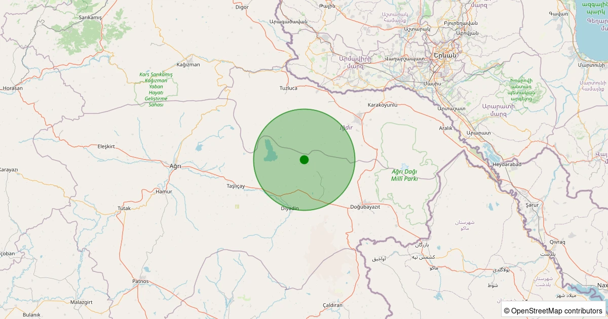 Son 7 gün içinde Doğubayazıt - Güllüce Köyü noktasından 100 km yarıçap içerisinde meydana gelen diğer depremler: