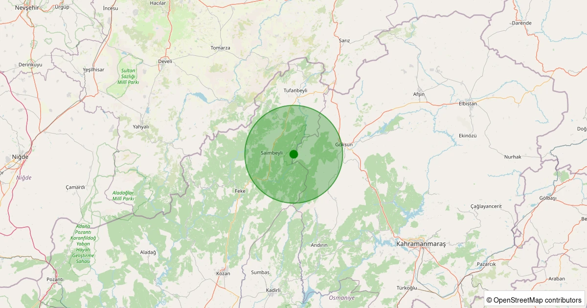 Son 7 gün içinde Saimbeyli - Yeniköy noktasından 100 km yarıçap içerisinde meydana gelen diğer depremler: