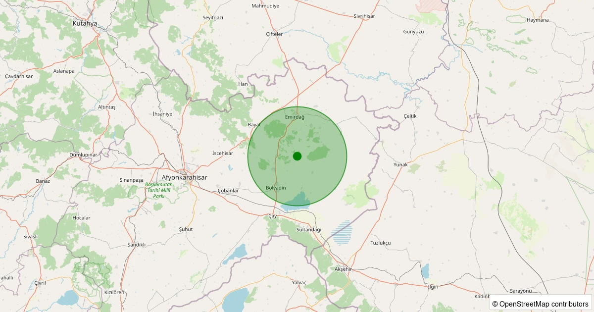 Son 7 gün içinde Bolvadin - Karayokuş Köyü noktasından 100 km yarıçap içerisinde meydana gelen diğer depremler: