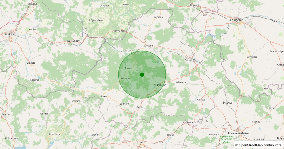 Son 7 gün içinde Emet - Yarış Köyü noktasından 100 km yarıçap içerisinde meydana gelen diğer depremler:
