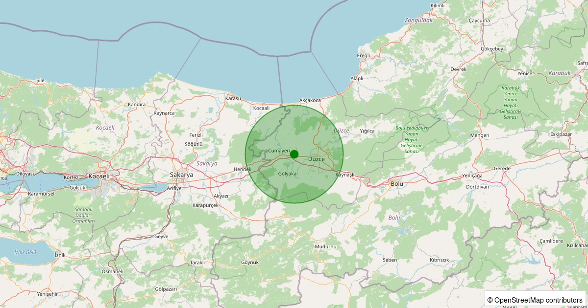 Son 7 gün içinde Çilimli - Pırpır Köyü noktasından 100 km yarıçap içerisinde meydana gelen diğer depremler: