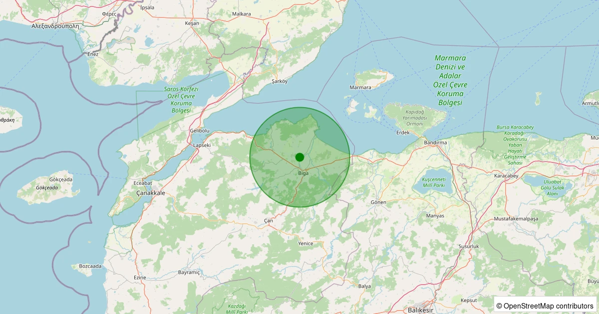 Son 7 gün içinde Biga - Güleç Köyü noktasından 100 km yarıçap içerisinde meydana gelen diğer depremler: