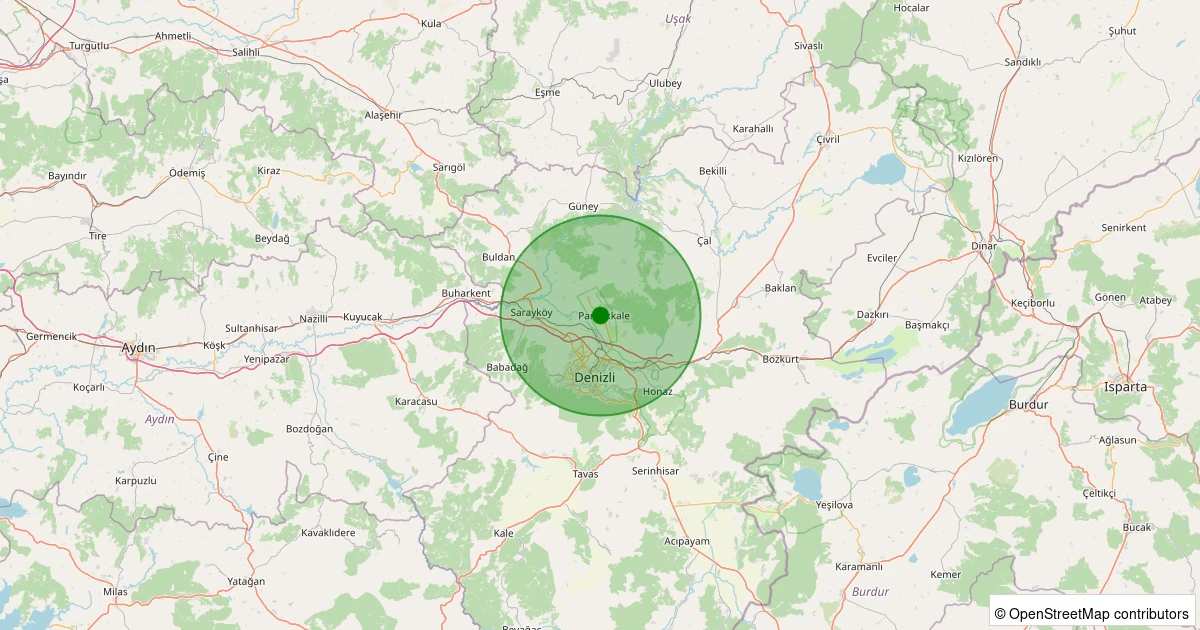 Son 7 gün içinde Pamukkale - Pamukkale Köyü noktasından 100 km yarıçap içerisinde meydana gelen diğer depremler: