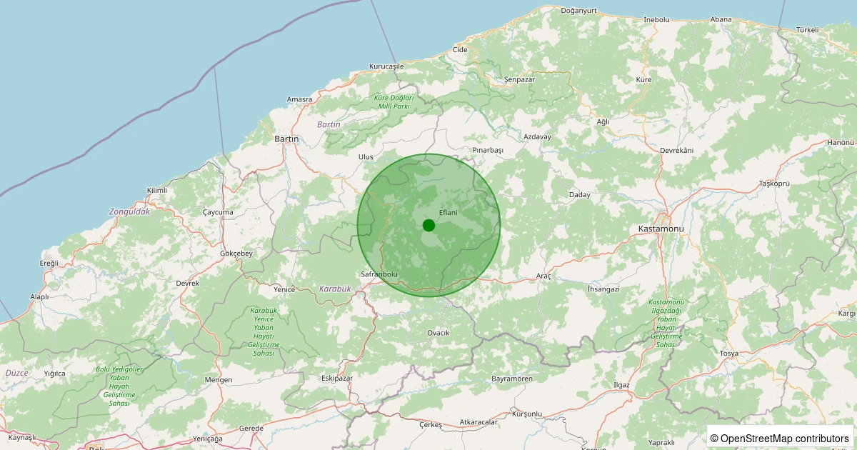 Son bir hafta içerisinde Karabük şehri Eflani - Alaçat Köyü noktasından 100 km yarıçap içerisinde toplamda 2 deprem kaydedilmiştir. Bu depremlerden en büyüğü 1.7 büyüklüğünde ve en sığ odaklısı 7.00 kilometre derinlikte gerçekleşmiştir.