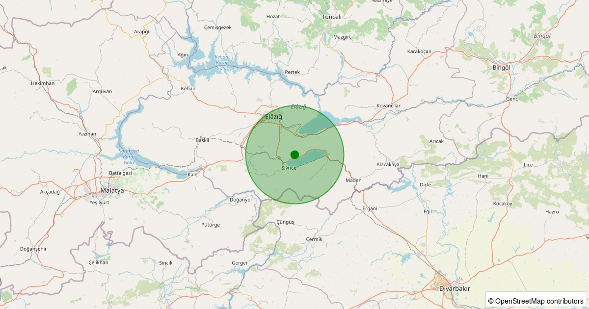 Son 7 gün içinde Sivrice - Güney Köyü noktasından 100 km yarıçap içerisinde meydana gelen diğer depremler: