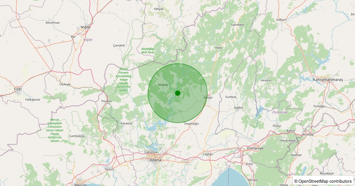 Son 7 gün içinde Kozan - Doğanalanı noktasından 100 km yarıçap içerisinde meydana gelen diğer depremler: