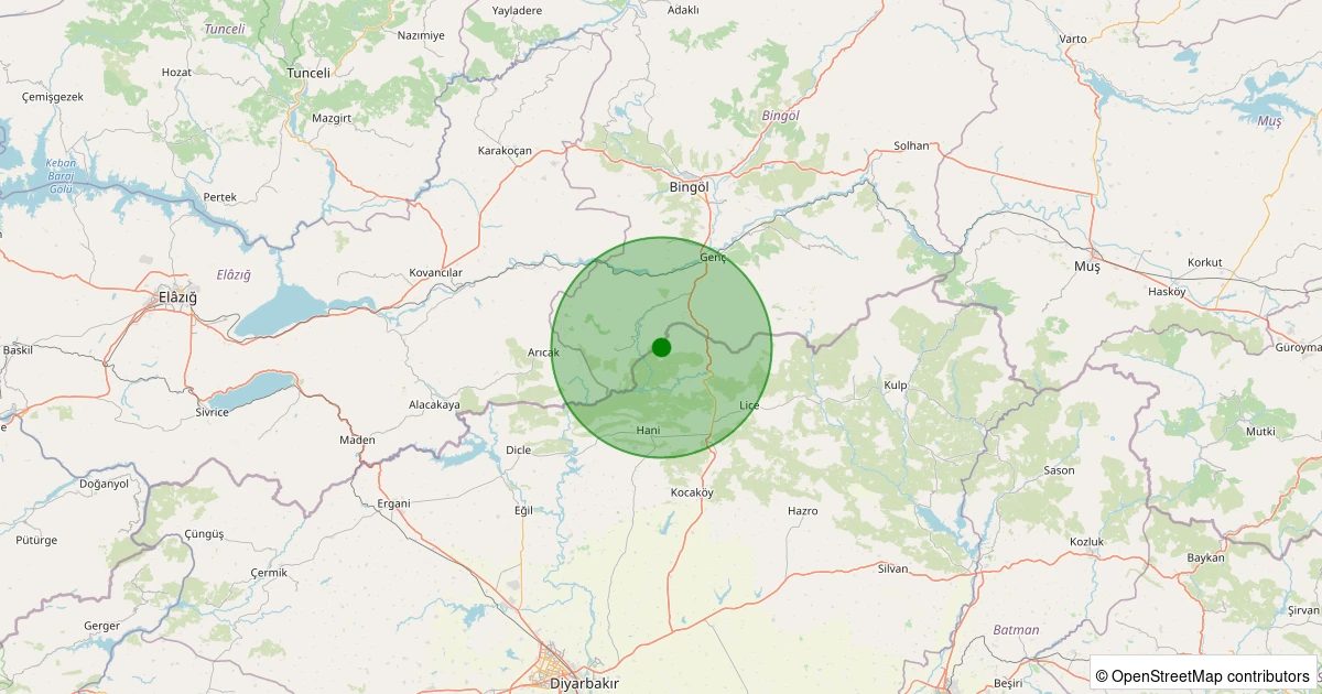 Son 7 gün içinde Genç - Direkli Köyü noktasından 100 km yarıçap içerisinde meydana gelen diğer depremler: