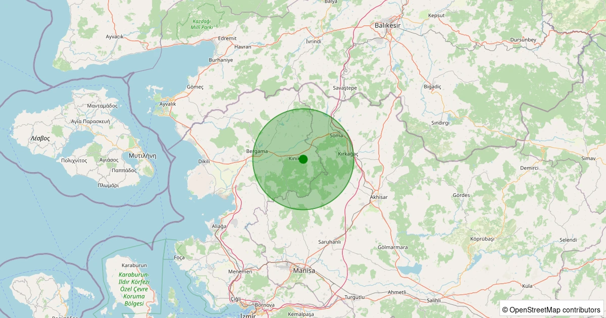 Son 7 gün içinde Kınık - Kocaömerli noktasından 100 km yarıçap içerisinde meydana gelen diğer depremler:
