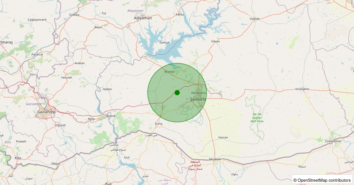 Son 7 gün içinde Karaköprü - Örcünlü noktasından 100 km yarıçap içerisinde meydana gelen diğer depremler: