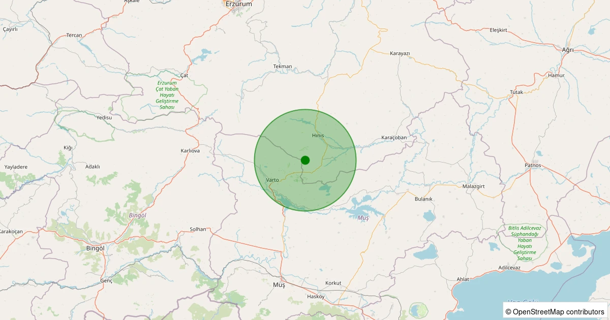 Son 7 gün içinde Hınıs - Elmadalı Köyü noktasından 100 km yarıçap içerisinde meydana gelen diğer depremler: