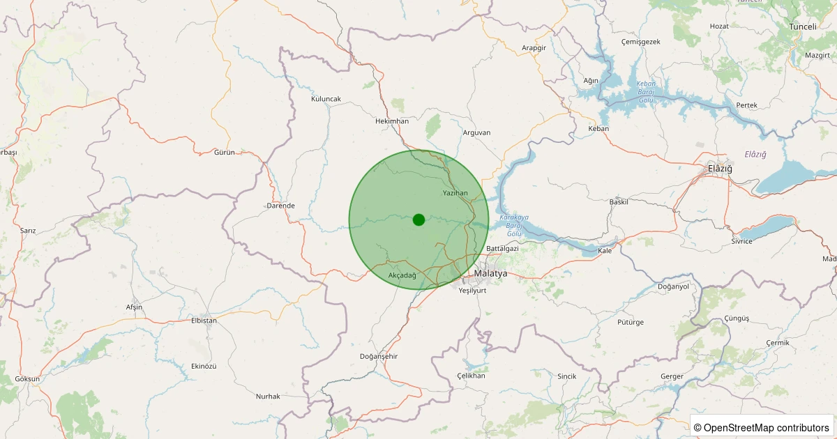Son 7 gün içinde Akçadağ - Ilıcak noktasından 100 km yarıçap içerisinde meydana gelen diğer depremler: