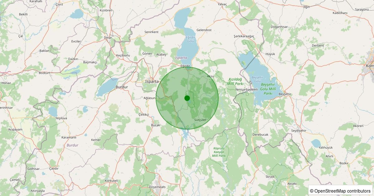 Son 7 gün içinde Eğirdir - Kırıntı Köyü noktasından 100 km yarıçap içerisinde meydana gelen diğer depremler: