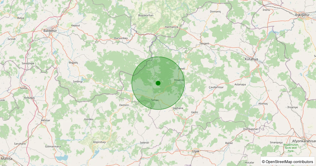 Son 7 gün içinde Simav - Yemişli Köyü noktasından 100 km yarıçap içerisinde meydana gelen diğer depremler: