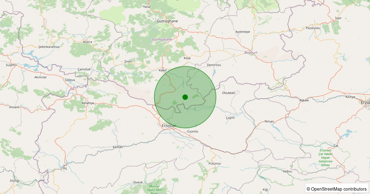 Son 7 gün içinde Kelkit - Günbatur Köyü noktasından 100 km yarıçap içerisinde meydana gelen diğer depremler: