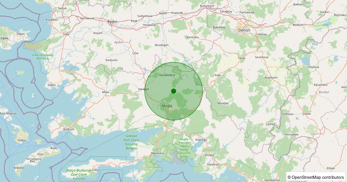 Son 7 gün içinde Menteşe - Şenyayla noktasından 100 km yarıçap içerisinde meydana gelen diğer depremler: