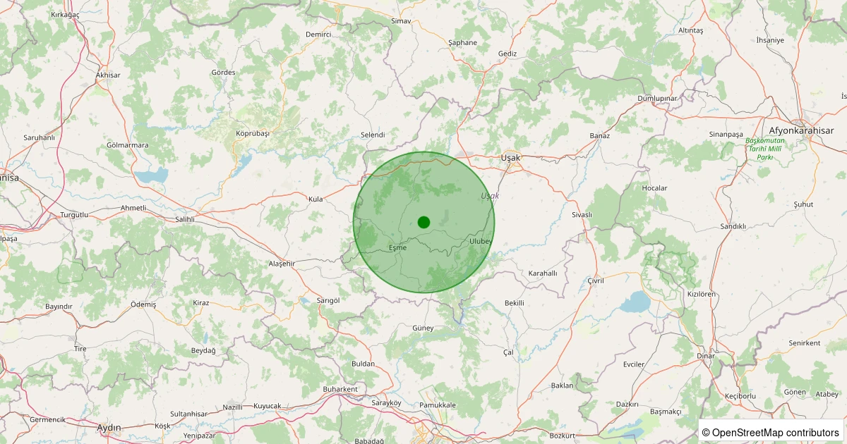 Son 7 gün içinde Eşme - Ahmetler Köyü noktasından 100 km yarıçap içerisinde meydana gelen diğer depremler: