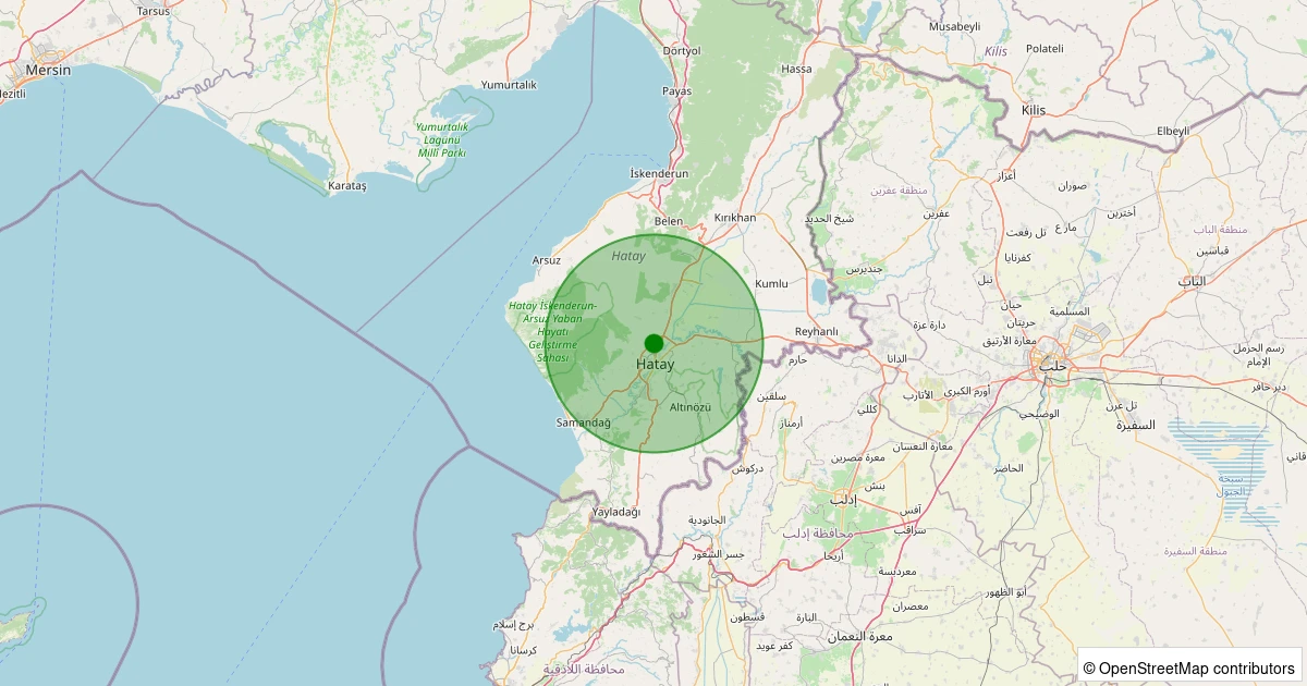 Son 7 gün içinde Antakya - Aşağıekinci noktasından 100 km yarıçap içerisinde meydana gelen diğer depremler: