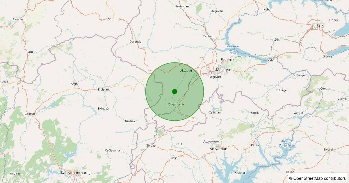 Son 7 gün içinde Doğanşehir - Polat noktasından 100 km yarıçap içerisinde meydana gelen diğer depremler: