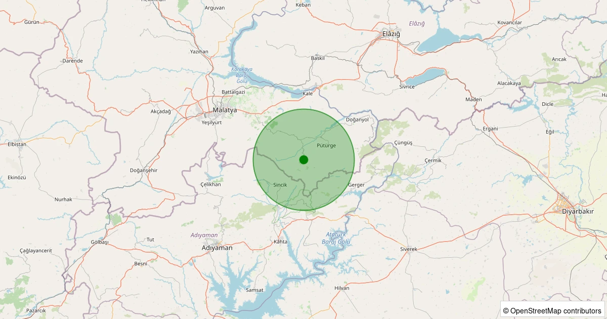 Son 7 gün içinde Pütürge - Tepehan/Arguça noktasından 100 km yarıçap içerisinde meydana gelen diğer depremler:
