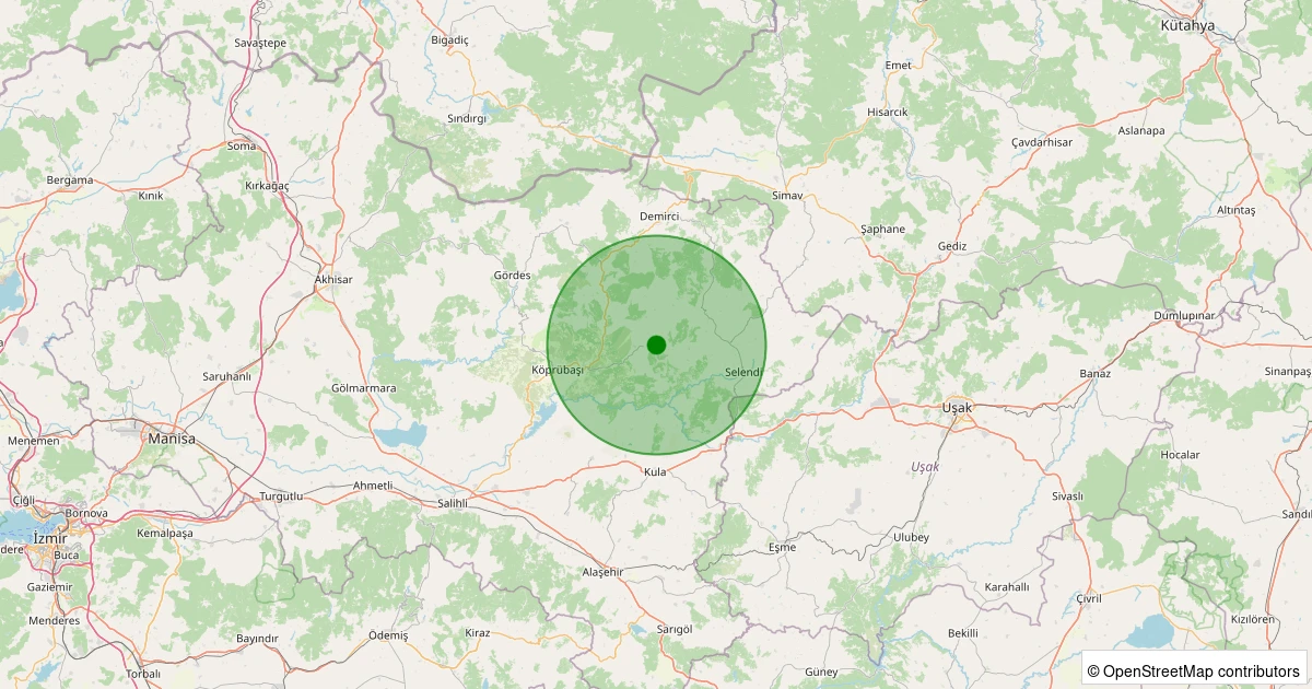 Son 7 gün içinde Demirci - Hüdük noktasından 100 km yarıçap içerisinde meydana gelen diğer depremler: