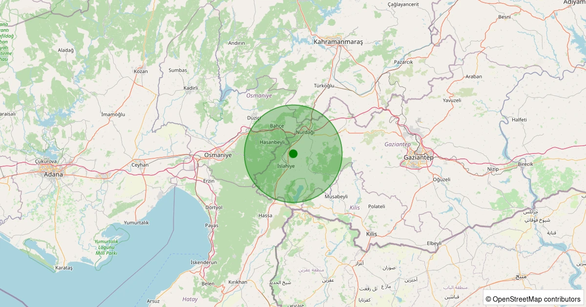 Son 7 gün içinde İslahiye - Kozdere noktasından 100 km yarıçap içerisinde meydana gelen diğer depremler: