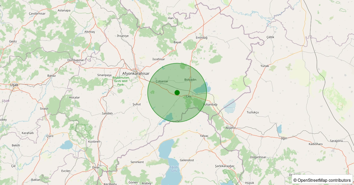 Son 7 gün içinde Çay - Alikaleli noktasından 100 km yarıçap içerisinde meydana gelen diğer depremler:
