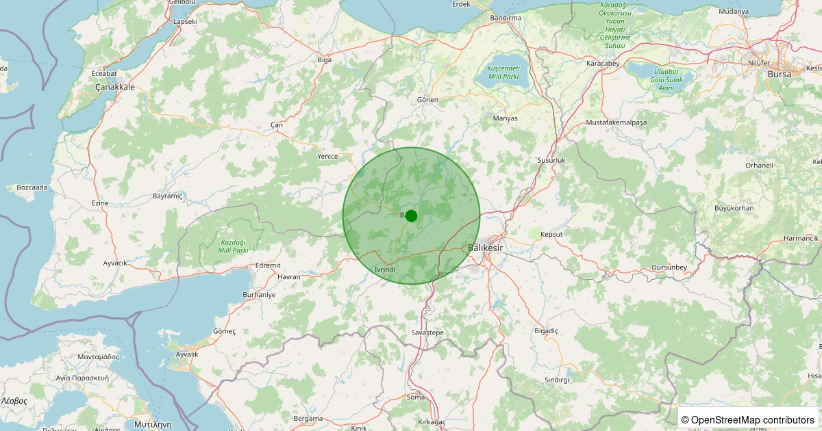 Son 7 gün içinde Balya - Kocacami noktasından 100 km yarıçap içerisinde meydana gelen diğer depremler: