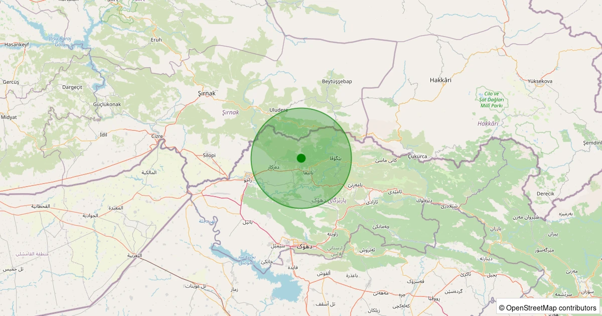 Son 7 gün içinde Zakho, Duhok (Irak) - [14.65 km] Uludere (Şırnak) noktasından 100 km yarıçap içerisinde meydana gelen diğer depremler: