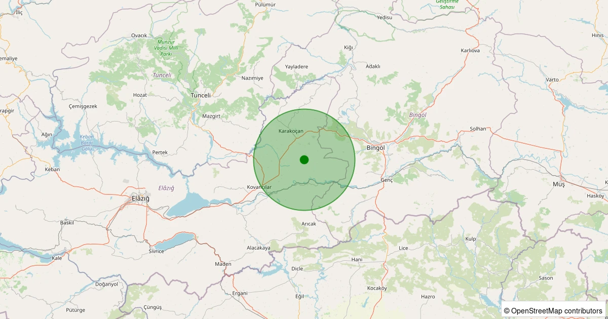 Son 7 gün içinde Kovancılar - İsaağa Köyü noktasından 100 km yarıçap içerisinde meydana gelen diğer depremler: