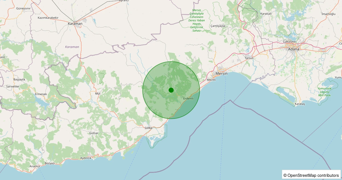 Son 7 gün içinde Erdemli - Hüsametli noktasından 100 km yarıçap içerisinde meydana gelen diğer depremler: