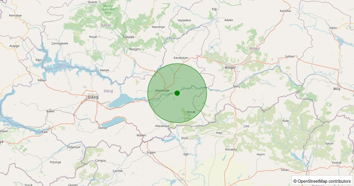 Son 7 gün içinde Palu - Umutkaya Köyü noktasından 100 km yarıçap içerisinde meydana gelen diğer depremler: