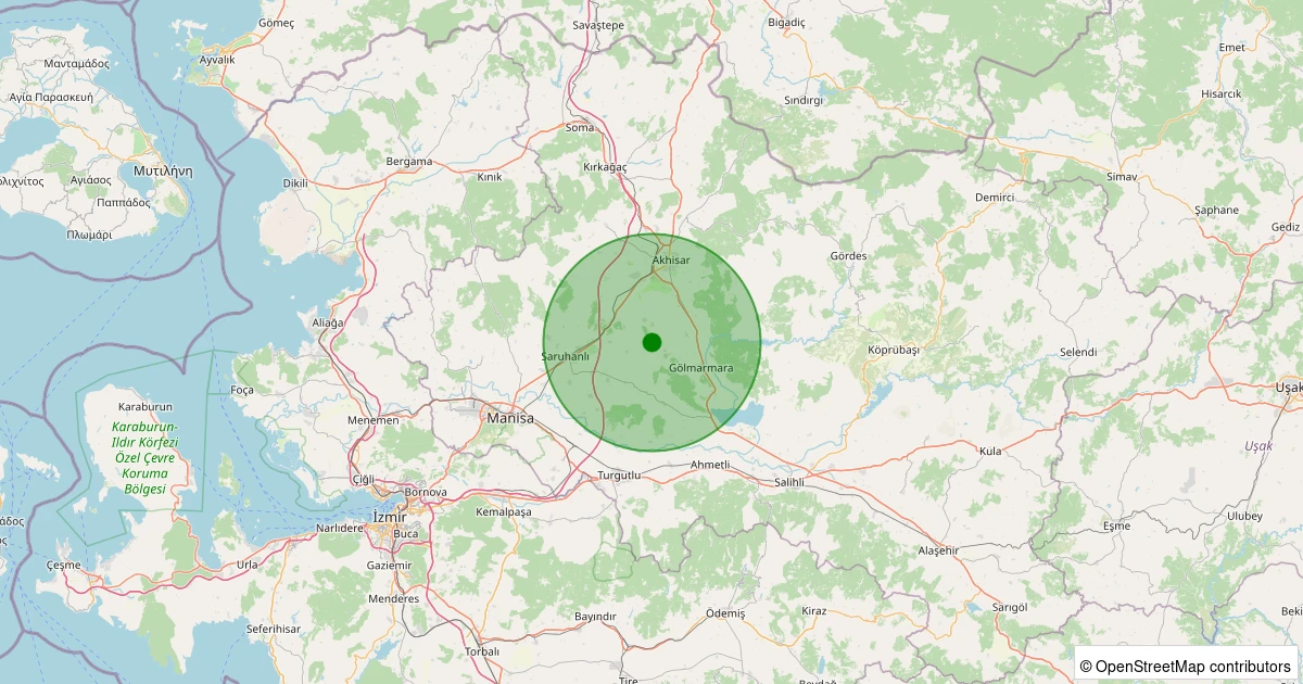 Son 7 gün içinde Saruhanlı - Kumkuyucak noktasından 100 km yarıçap içerisinde meydana gelen diğer depremler: