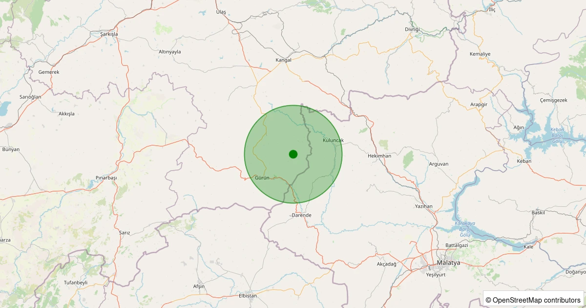 Son 7 gün içinde Gürün - Külahlı Köyü noktasından 100 km yarıçap içerisinde meydana gelen diğer depremler: