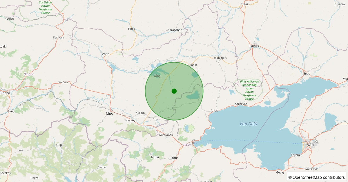Son 7 gün içinde Bulanık - Arı Köyü noktasından 100 km yarıçap içerisinde meydana gelen diğer depremler: