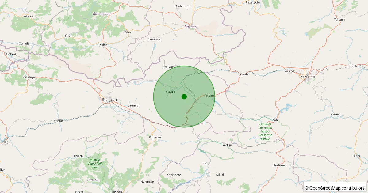 Son bir hafta içerisinde Erzincan şehri Çayırlı - Aşağı Kartallı Köyü noktasından 100 km yarıçap içerisinde toplamda 56 deprem kaydedilmiştir. Bu depremlerden en büyüğü 2.7 büyüklüğünde ve en sığ odaklısı 1.00 kilometre derinlikte gerçekleşmiştir.