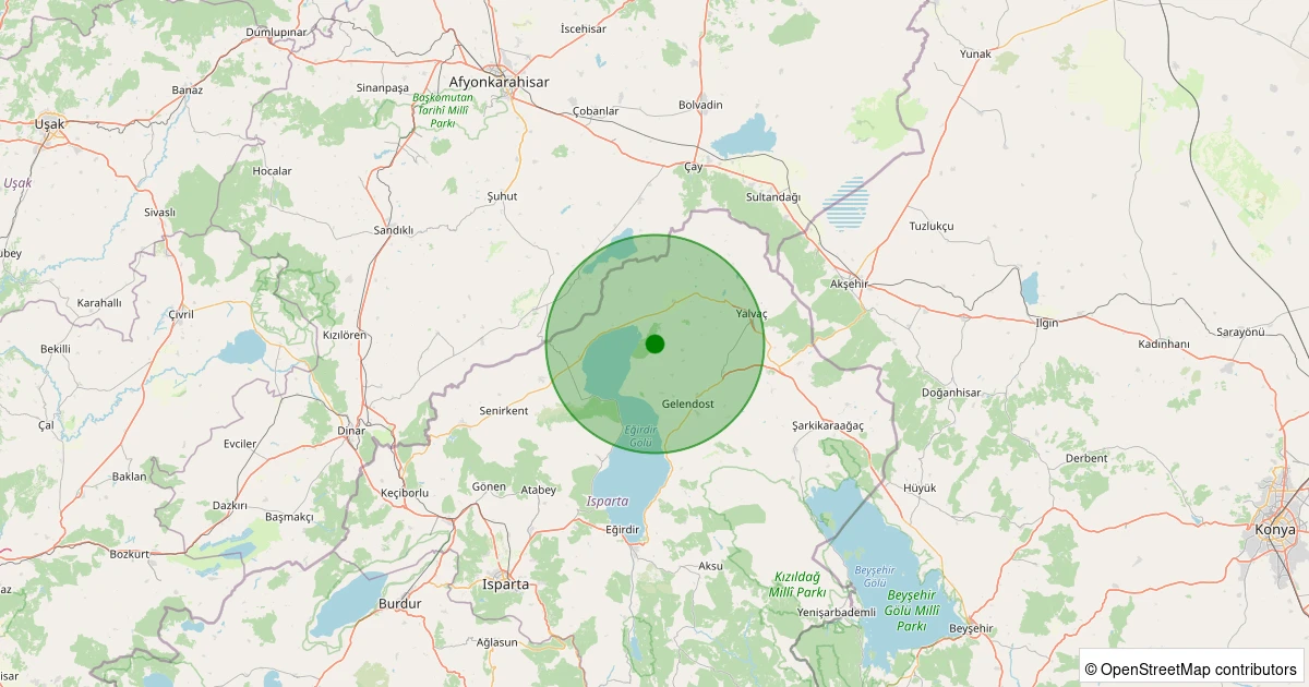 Son 7 gün içinde Yalvaç - Tokmacık Köyü noktasından 100 km yarıçap içerisinde meydana gelen diğer depremler: