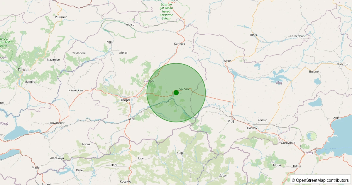 Son 7 gün içinde Solhan - Dilektepe Köyü noktasından 100 km yarıçap içerisinde meydana gelen diğer depremler: