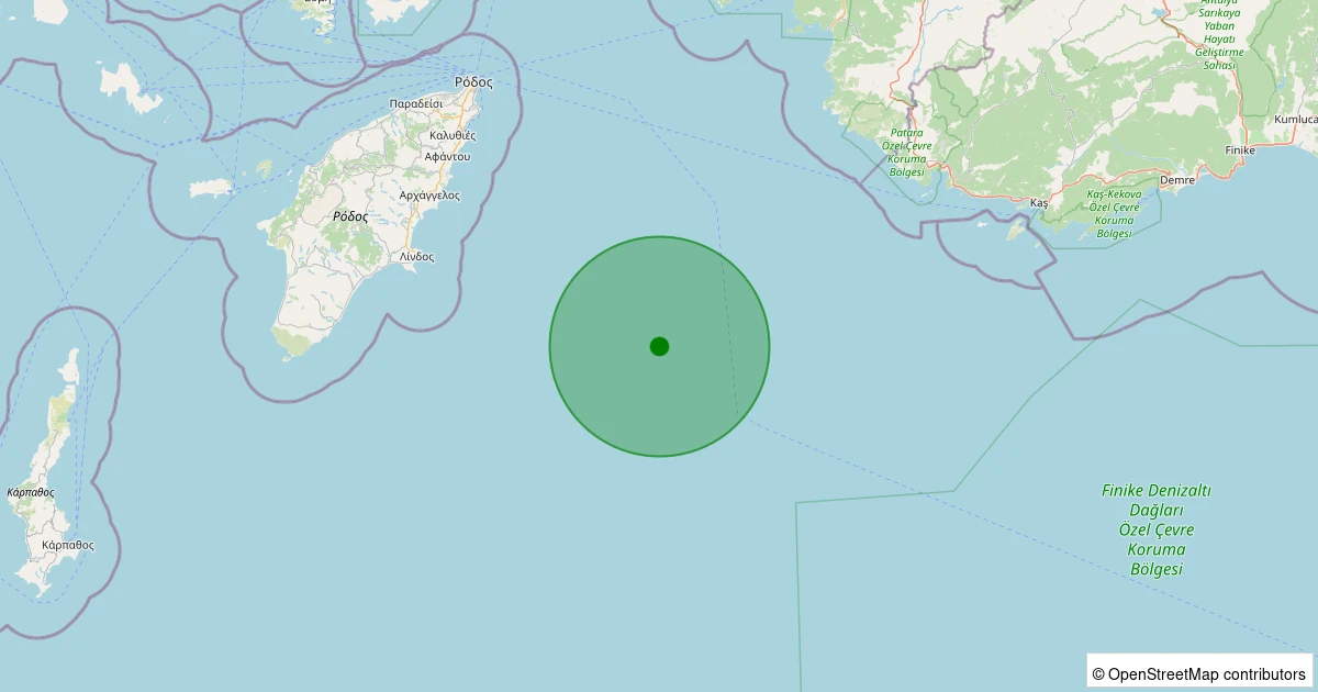 Son bir hafta içerisinde Akdeniz - [69.70 km] Kaş (Antalya) noktasından 100 km yarıçap içerisinde toplamda 5 deprem kaydedilmiştir. Bu depremlerden en büyüğü 3.0 büyüklüğünde ve en sığ odaklısı 10.50 kilometre derinlikte gerçekleşmiştir.