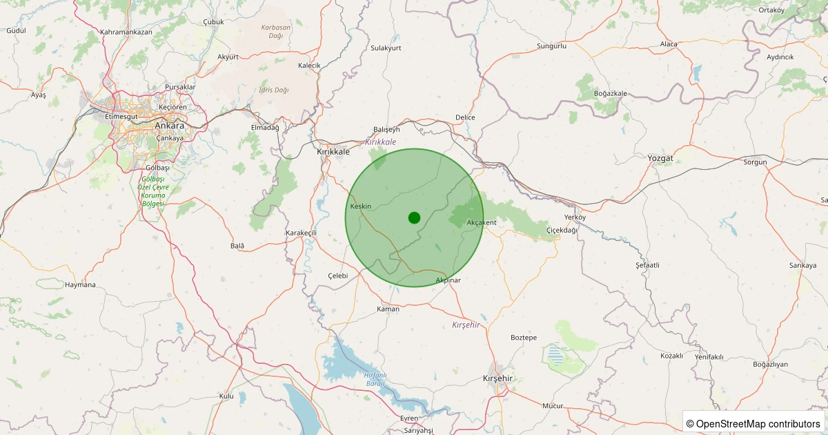 Son 7 gün içinde Keskin - Beşler Köyü noktasından 100 km yarıçap içerisinde meydana gelen diğer depremler: