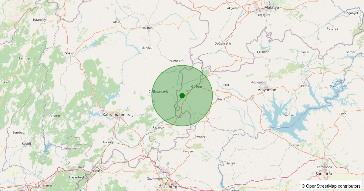 Son bir hafta içerisinde Adıyaman şehri Gölbaşı noktasından 100 km yarıçap içerisinde toplamda 234 deprem kaydedilmiştir. Bu depremlerden en büyüğü 3.7 büyüklüğünde ve en sığ odaklısı 0.00 kilometre derinlikte gerçekleşmiştir.