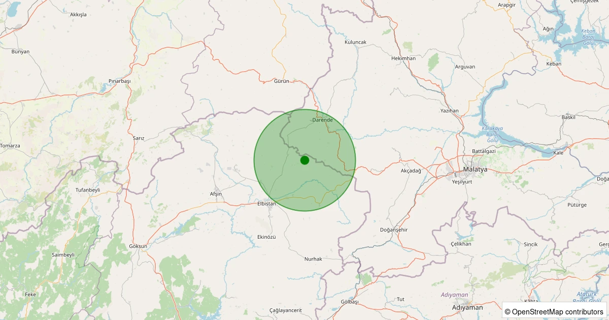 Son 7 gün içinde Elbistan - Yalıntaş Köyü noktasından 100 km yarıçap içerisinde meydana gelen diğer depremler: